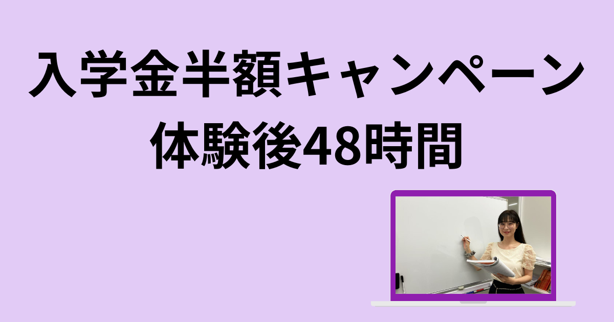 体験後48時間以内にご契約いただいた場合、入学金が半額になるキャンペーンを行っています。