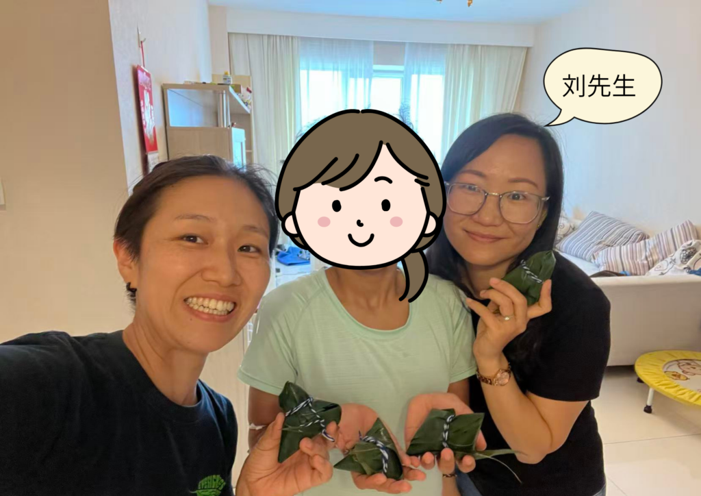 北京にて。私と娘と一緒に粽作りをした刘先生。