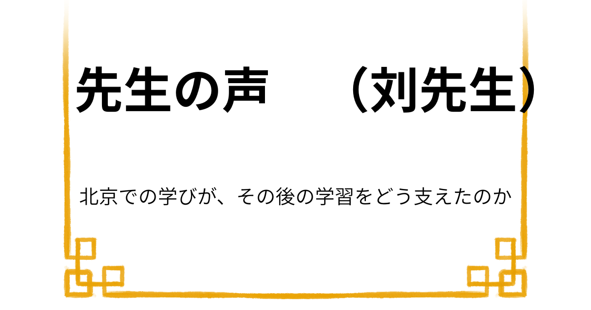 北京での学びが、その後の学習をどう支えたのか