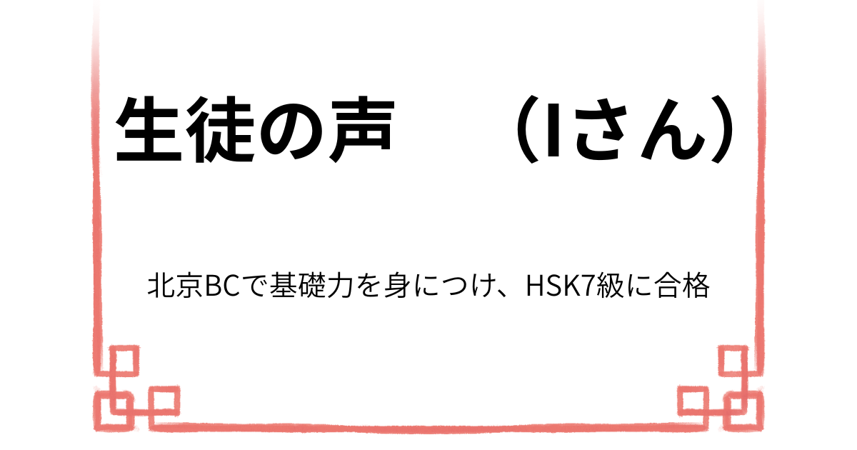 Iさんにとって北京BCで過ごした時間は、その後の学習や挑戦を、静かに支え続けてきたように感じます。